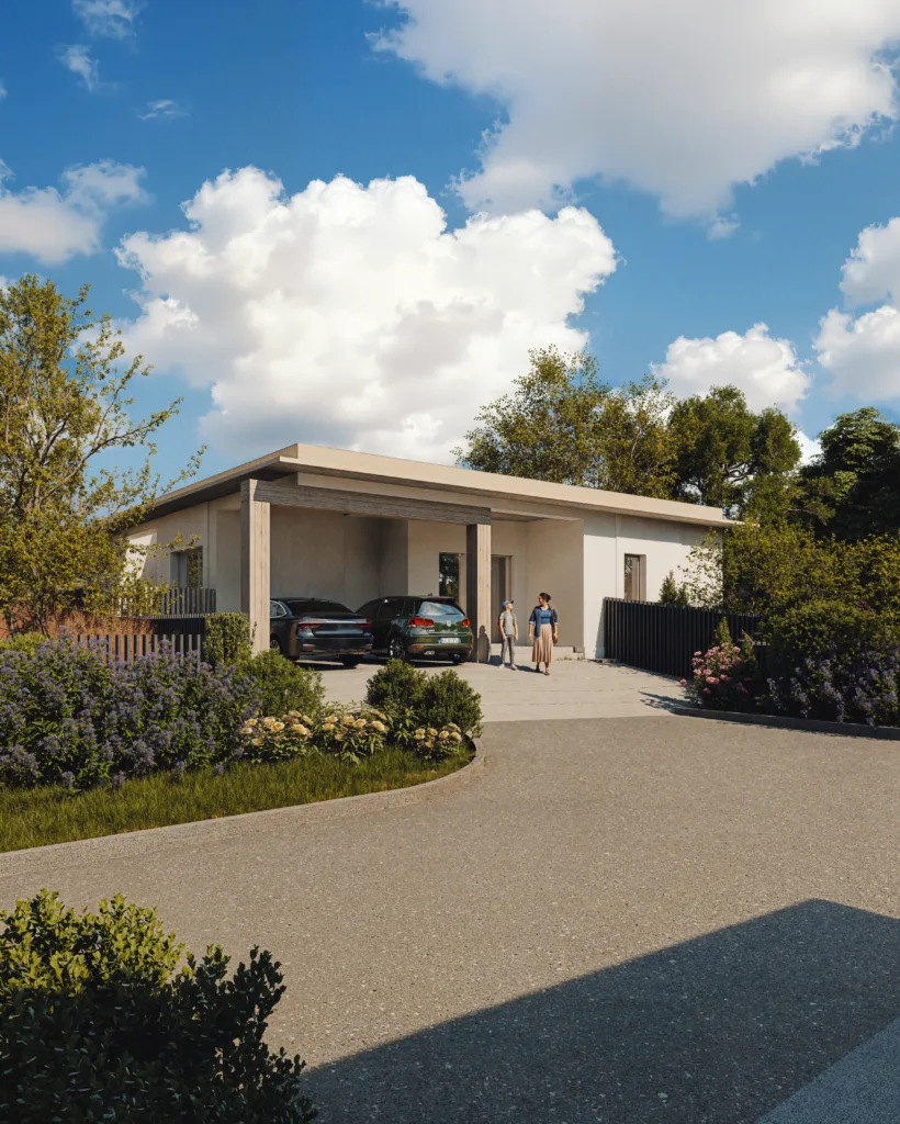 Resort pod Brdy s parcelami ideální velikosti a moderními rodinnými domy nabízí komfort nejnovějších technologií, dostatek parkovacích míst, fotovoltaiku, možnost volby tepelného čerpadlo pro vytápění, chlazení i rekuperaci vzduchu – technologie, které ovládáte z jediné aplikace.