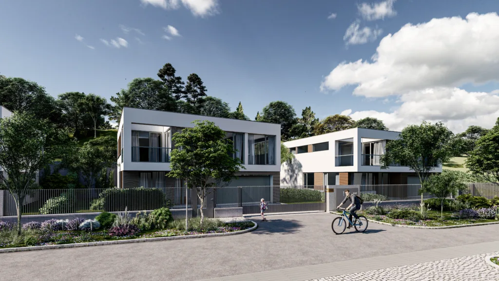 Přepychové vily sousedící přímo s lesem, jen pár minut chůze do města, přitom v klidné lokalitě. Takové luxusní bydlení na vás čeká v Řevnicích.