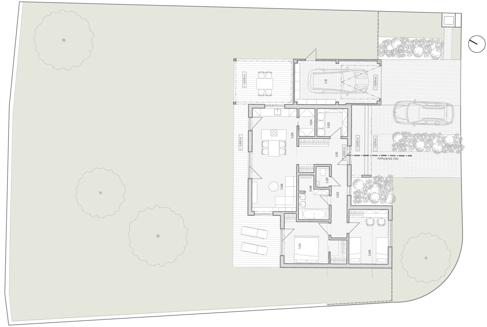 Pozemek č. 2 se prodává se stavebním povolením a projektem rodinného domu, který je možné změnit dle uvážení kupujícího. Nachází se v Resortu pod Brdy – Hodyně, jehož součástí a hlavní odlišností je mimořádný společný komunitní prostor se saunou, malým venkovním amfiteátrem, příjemným výčepem na posezení, biotopem ke koupání, dětským hřištěm a ohništěm na opékání.