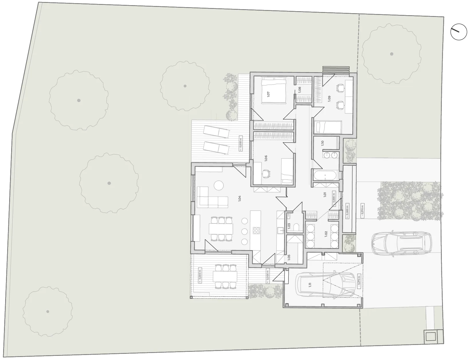 Pozemek č. 3 se prodává se stavebním povolením a projektem rodinného domu, který je možné změnit dle uvážení kupujícího. Nachází se v Resortu pod Brdy – Hodyně, jehož součástí a hlavní odlišností je mimořádný společný komunitní prostor se saunou, malým venkovním amfiteátrem, příjemným výčepem na posezení, biotopem ke koupání, dětským hřištěm a ohništěm na opékání.